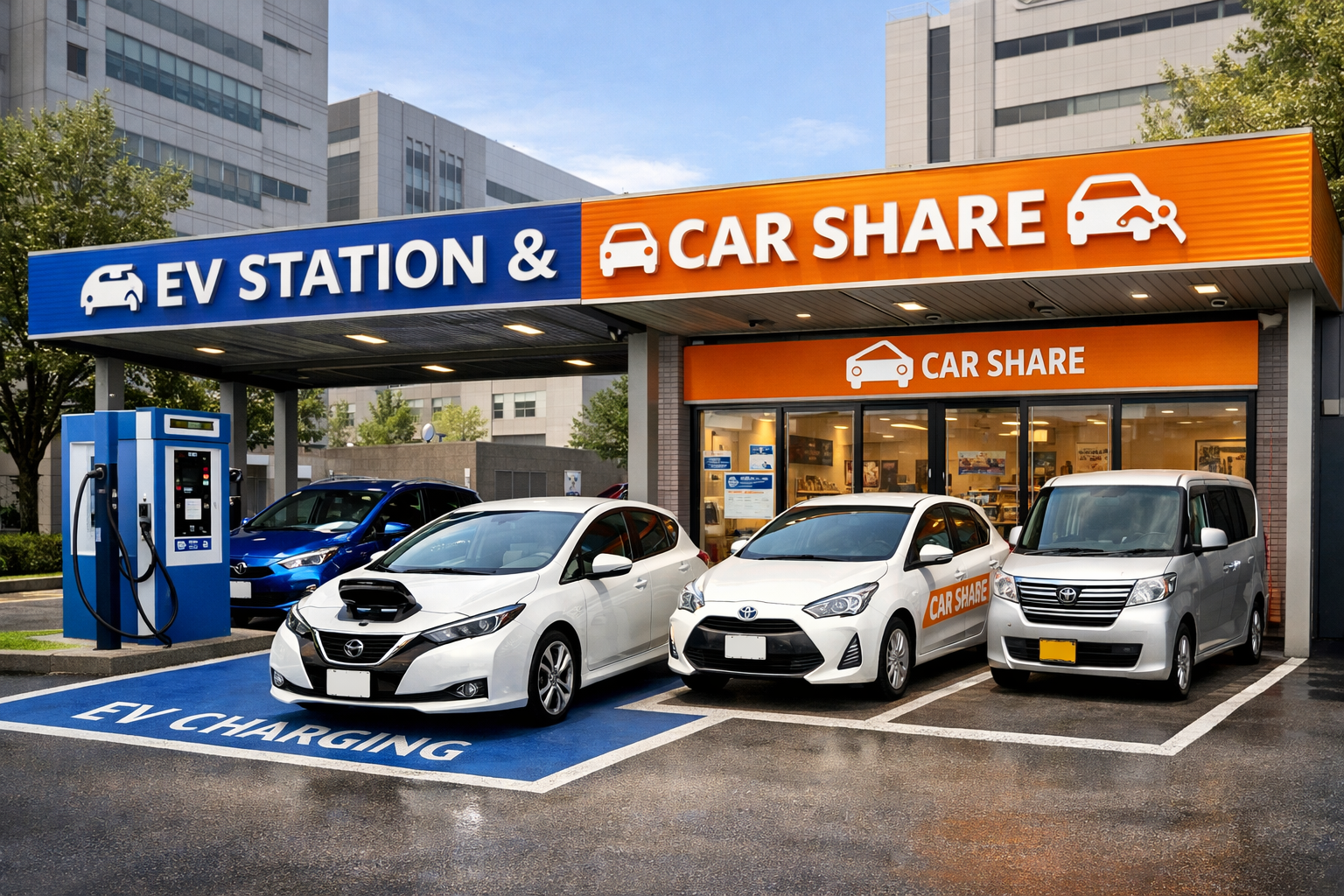 ステーションには複数の車種が配備され、ハイブリッド車なども選べるため、電気自動車への移行を迷っている人にも良い体験の機会になります。