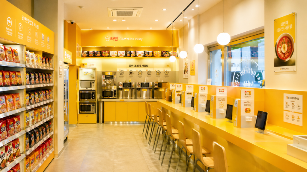 最大の特徴は、韓国ではおなじみのラーメンコンビニスタイル