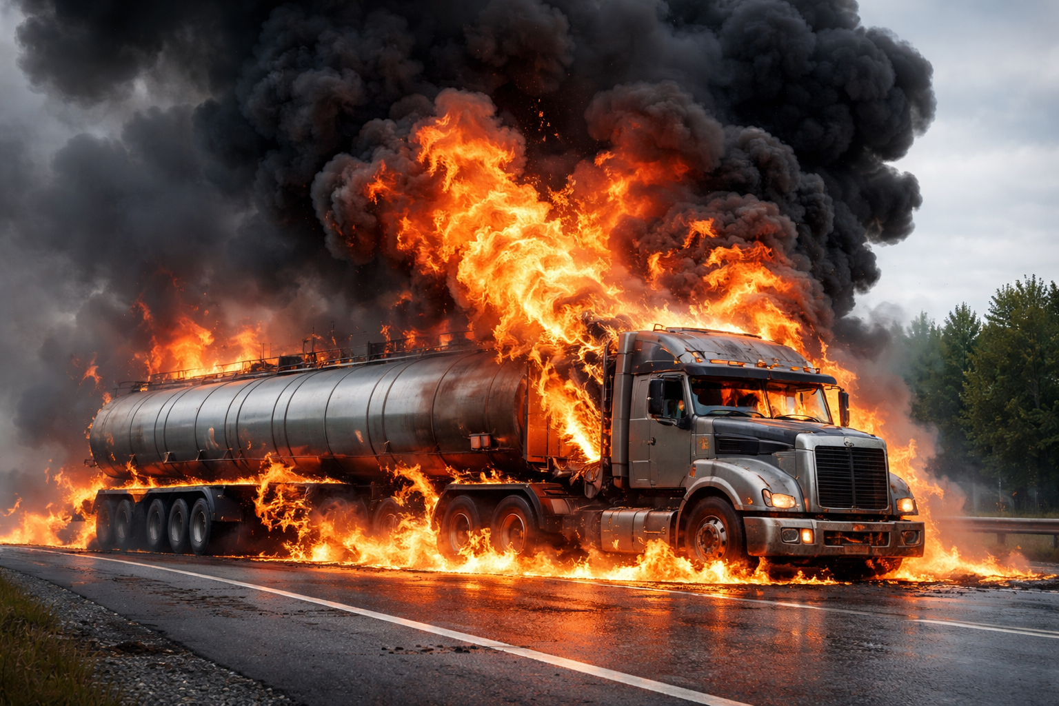 タンクローリーは可燃物や危険物を積載することもあるため、火災拡大のリスクが高い車両です。